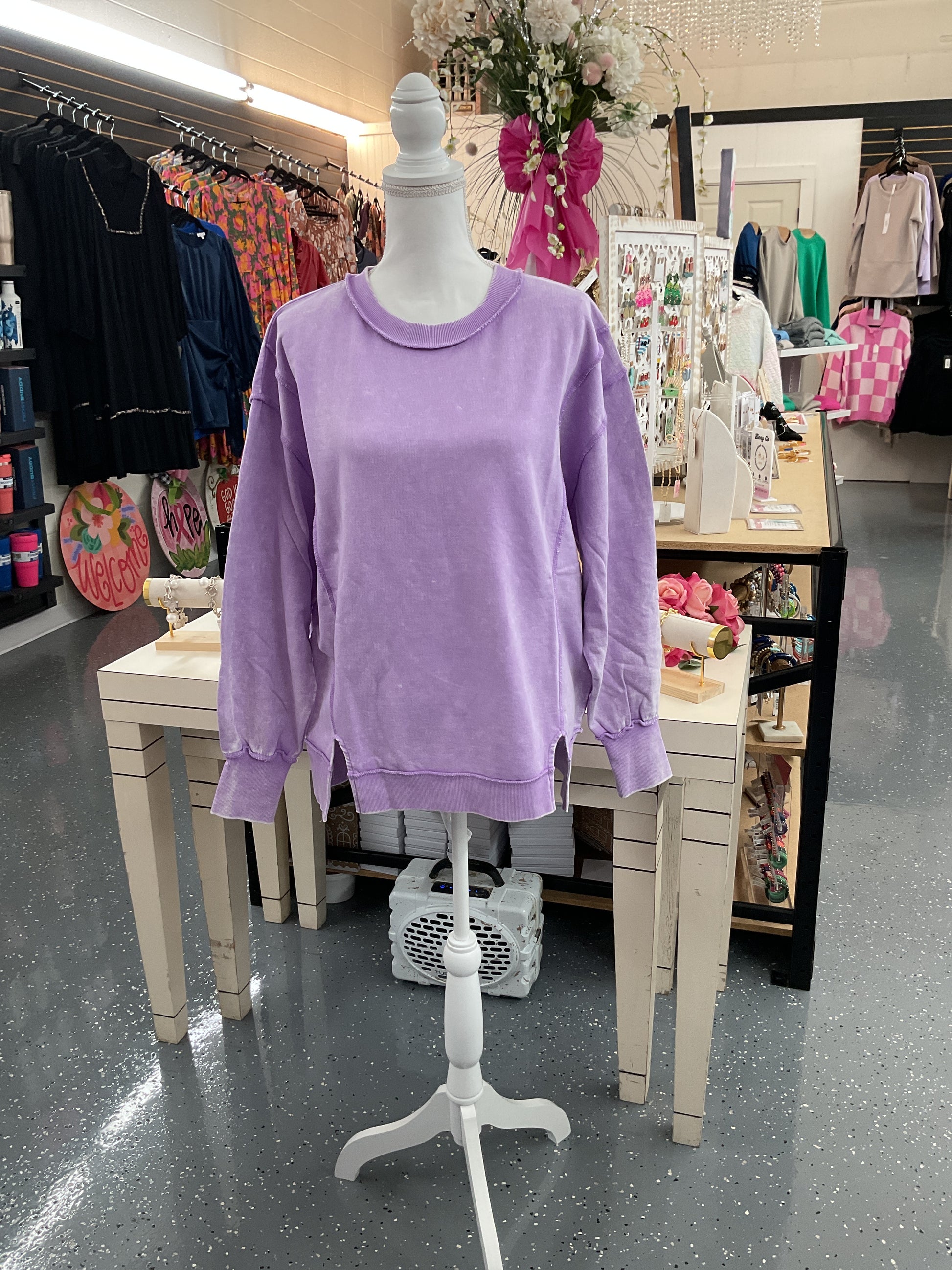 Acid Wash FT Exposed Seams Sweatshirt B Lavender
