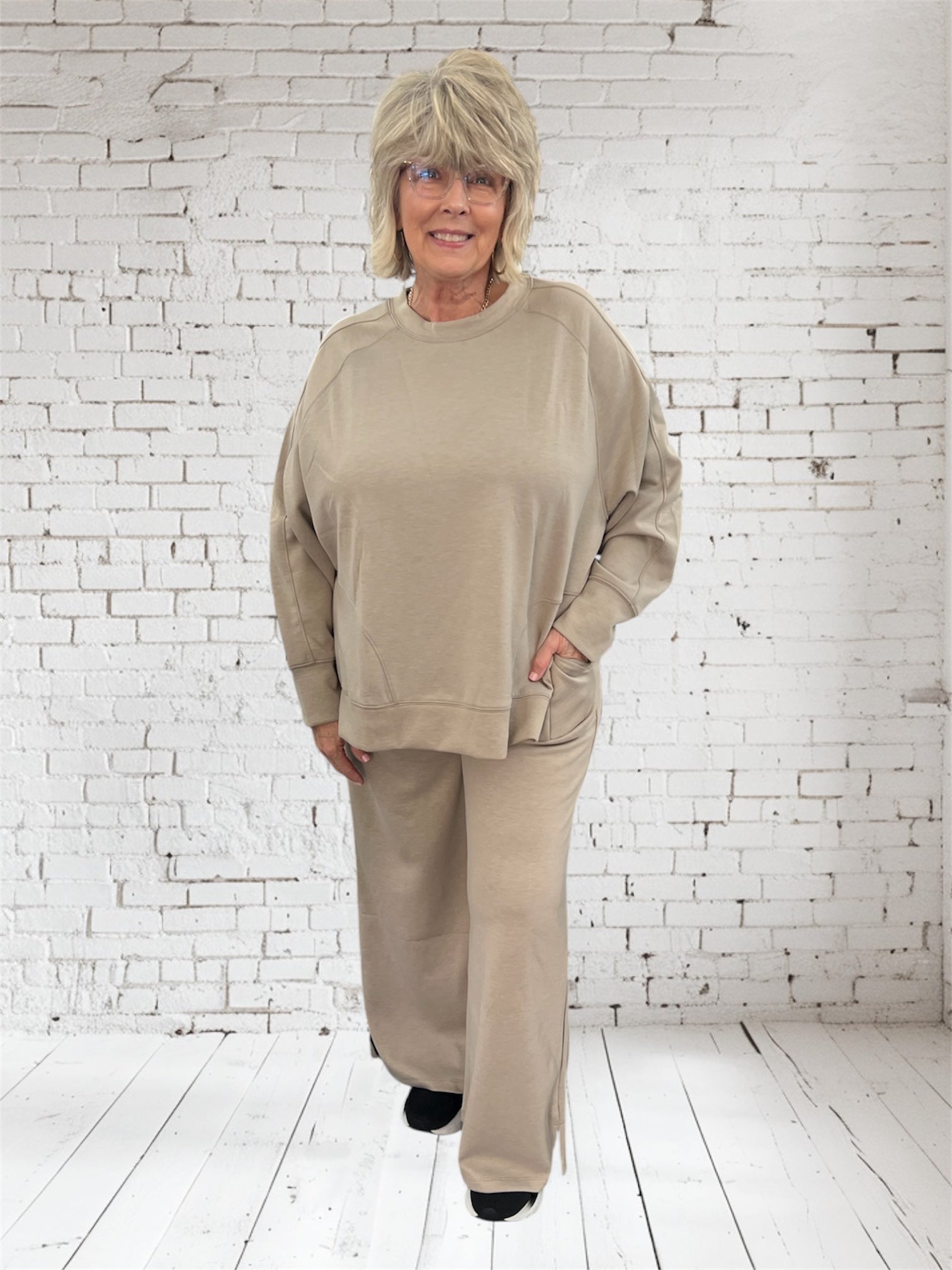 Stay effortlessly stylish and comfortable in this relaxed lounge set. Featuring a soft long-sleeve top with a laid-back fit and handy front pockets, paired with flowy wide-leg pants, this set is perfect for everyday wear. Whether you’re lounging at home, running errands, or meeting friends, it offers the ideal balance of comfort and casual chic.