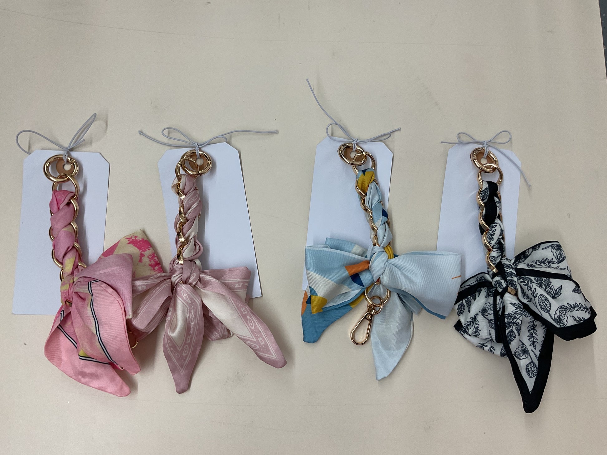 Add a touch of elegance to any bag with these stunning satin scarf charms. Featuring a silky-soft bow tied through a chunky gold chain, they clip on easily to purses, totes, or even keyrings for an instant pop of charm and color. The perfect accessory for fashion lovers who want to elevate their everyday look with a little luxe flair!