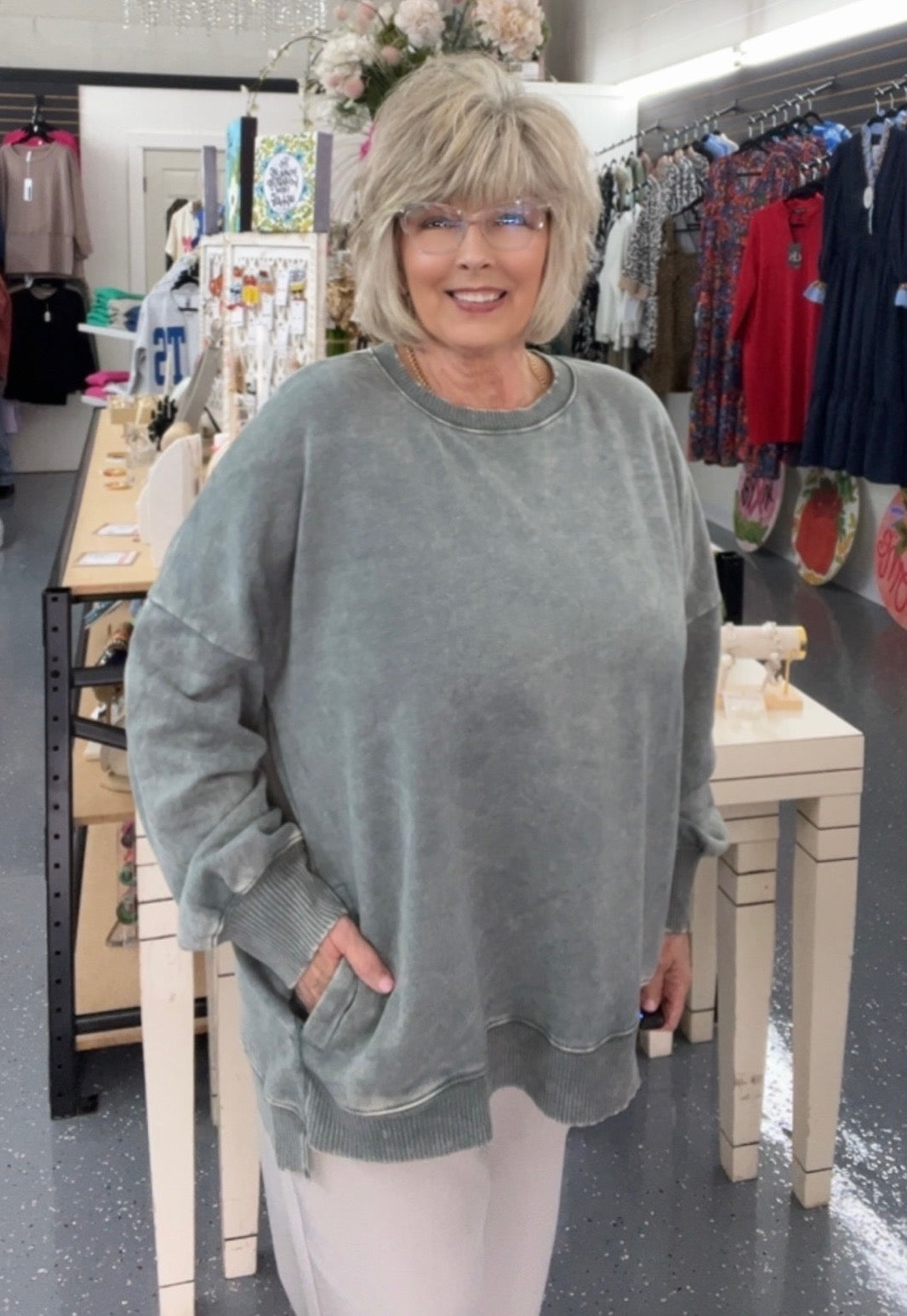 Hi low sweatshirt with pockets. 60% Cotton 40% Polyester