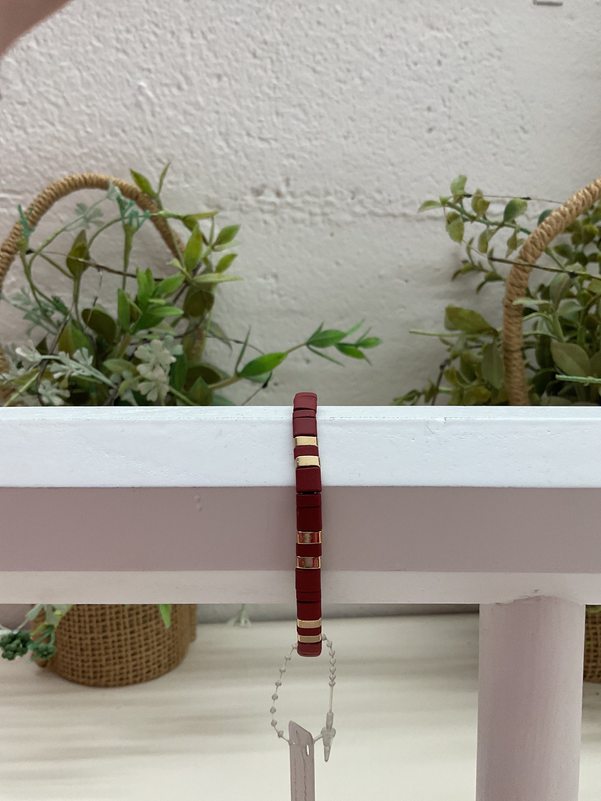 JM Maroon Gold Flat Beaded Bracelet