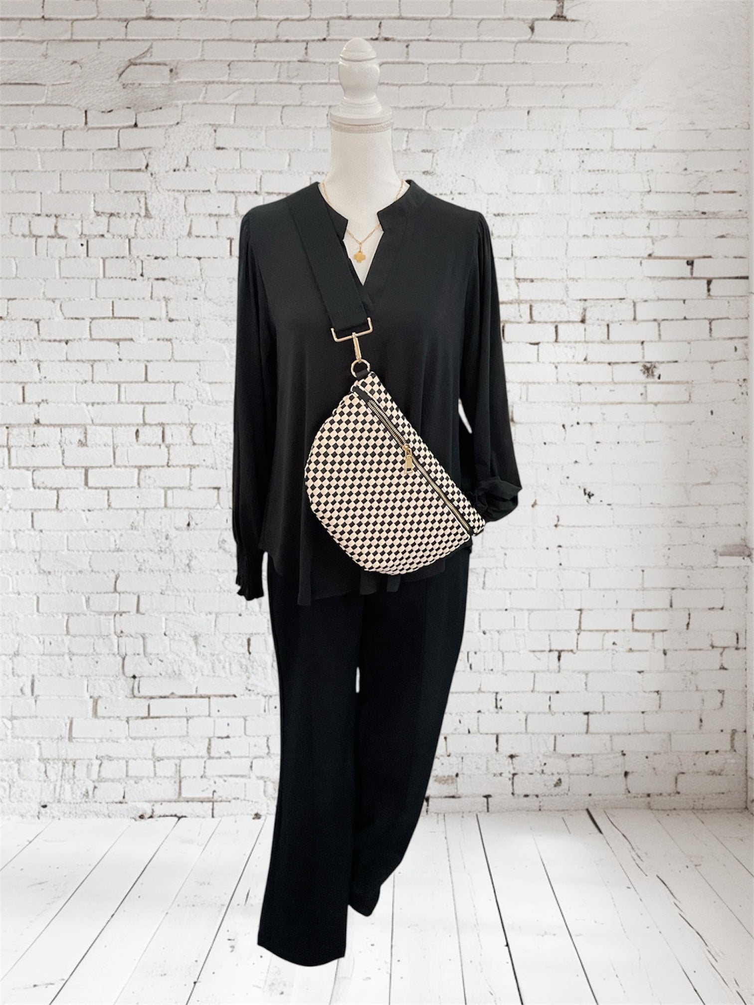 The Midnight Grace Blouse is a timeless classic with just the right touch of elegance. Featuring a flattering split neckline and softly gathered long sleeves with smocked cuffs, it flows effortlessly for a chic, comfortable fit. Easy to dress up or down, this blouse pairs perfectly with trousers for work, denim for casual days, or layered under a jacket for polished evenings.