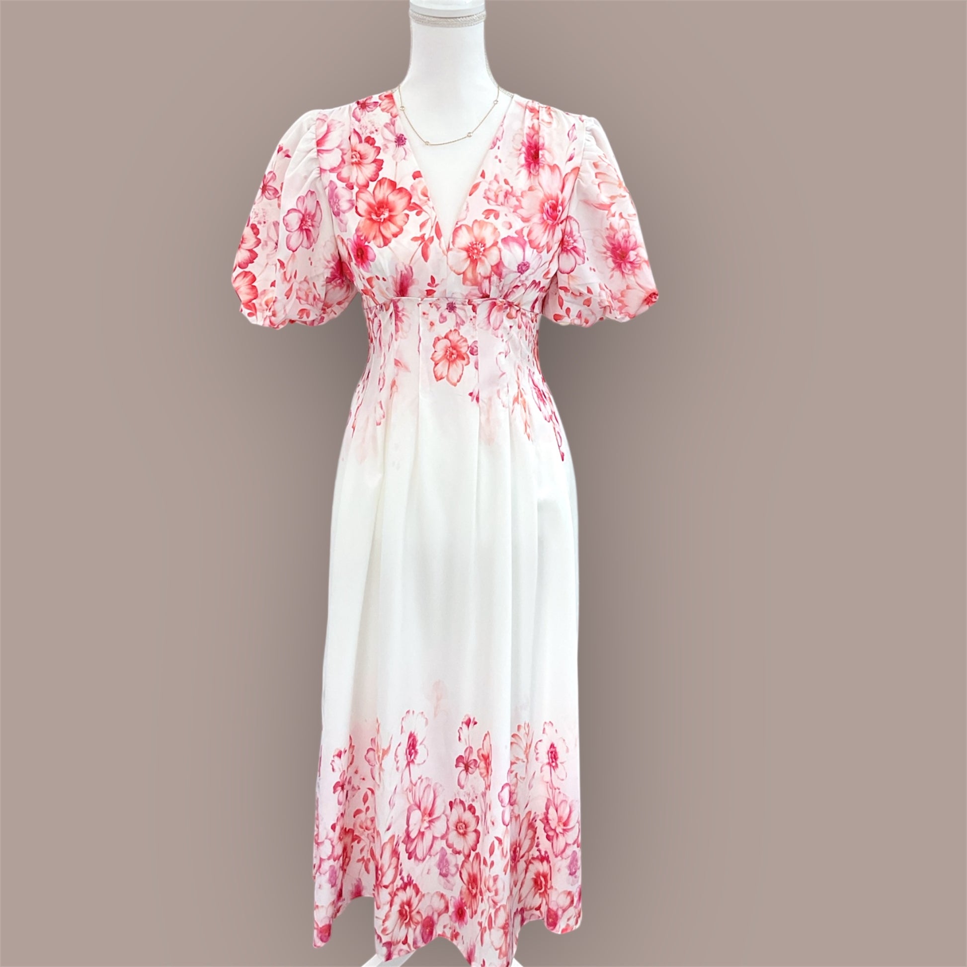 The Rosewater Bloom dress is soft, graceful, and effortlessly feminine. With romantic puff sleeves, a flattering V neckline and watercolor floral prints in shades of rose and blush, it’s perfect for weddings, brunch dates, or any day you want to feel extra lovely. This Rosewater bloom dress features a back zipper and is fitting true to size.