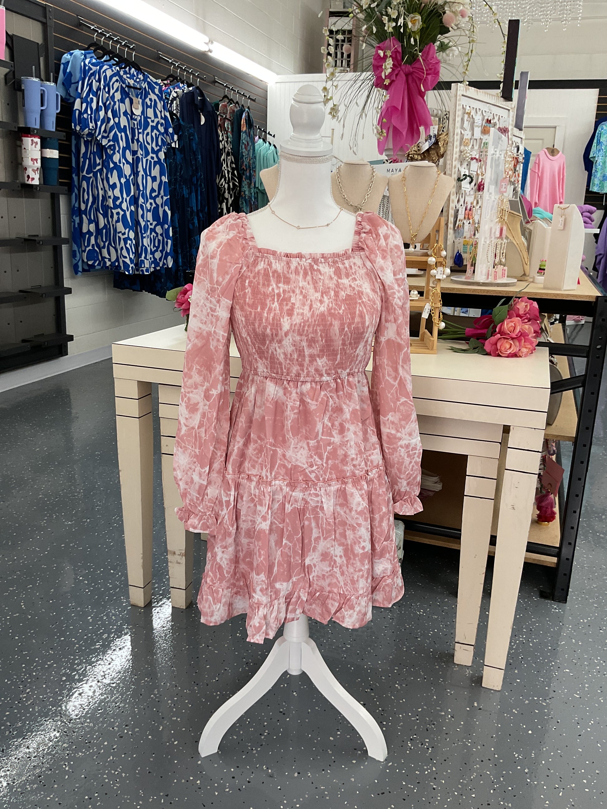 The Cotton Candy Swirl dress is a darling blend of comfort and charm, featuring soft pink tie-dye, puffed long sleeves, and a stretchy smocked bodice. Perfect for playdates or parties, it’s sweet, stylish, and made to twirl.