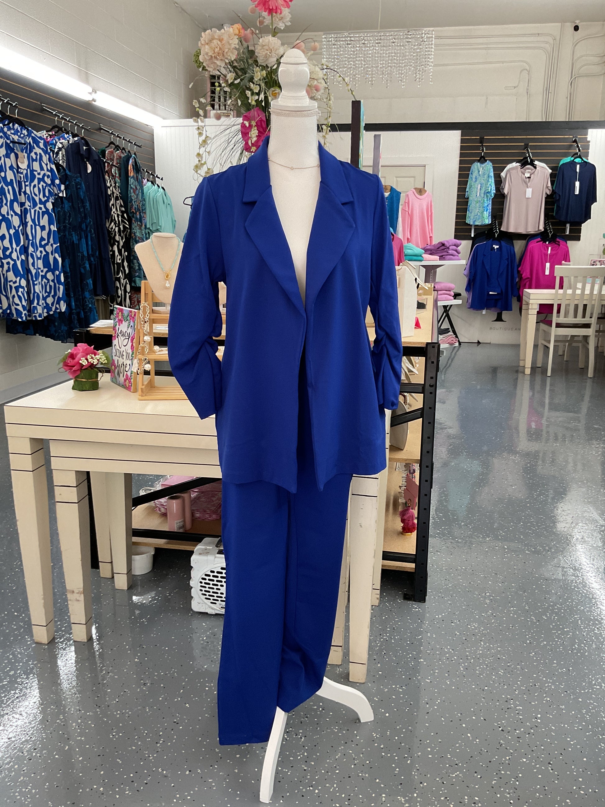 The Royal Pant and Blazer Set is a bold and polished look featuring a bright cobalt blue blazer and matching pants. Perfect for picture days or stylish outings. This Pant and Blazer Set has a snug fit.